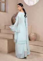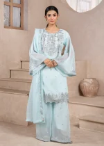 New arrival: Elegant chiffon fabric outfit featuring exquisite Dhaka pilzo and intricate full silver embroidery. Paired with a beautifully embroidered dupatta, this ensemble is the perfect choice for the wedding season, offering both grace and luxury for any special occasion.